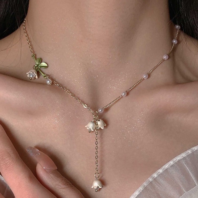 - WHITE LILY OF THE VALLEY NECKLACE:Designed with the lily of the valley as a design element, this necklace is a refreshing blend of ideas, trendy and with a vintage feel to add to your charm.