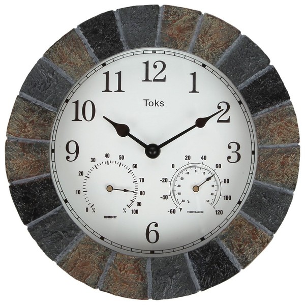 - EXCELLENT FOR OUTDOOR USE: The Hanging Wall Clock with a Thermometer and Hygrometer is designed to work both indoors and outdoors and has been crafted to be weather resistant, whether rain, or snow, sleet, or sun! The clock itself has been designed with quartz movement and guarantees accurate timekeeping.