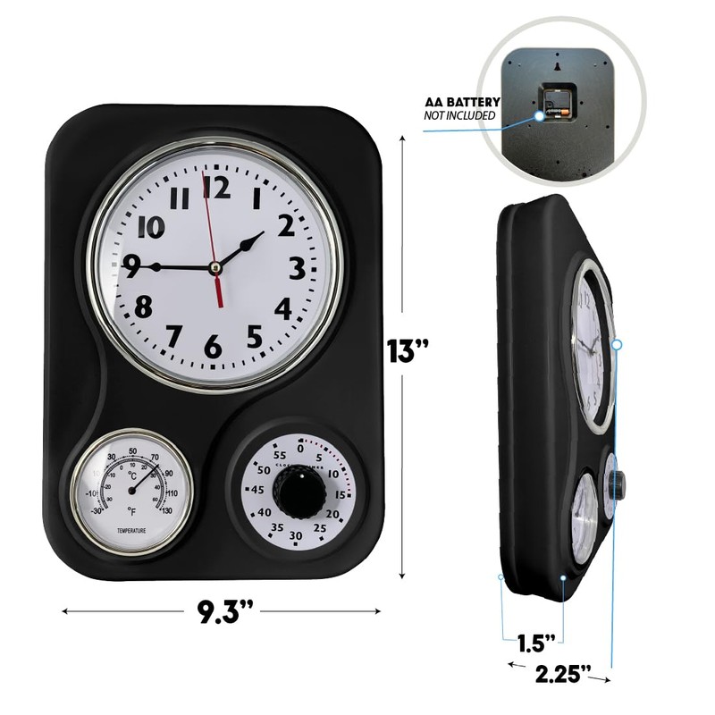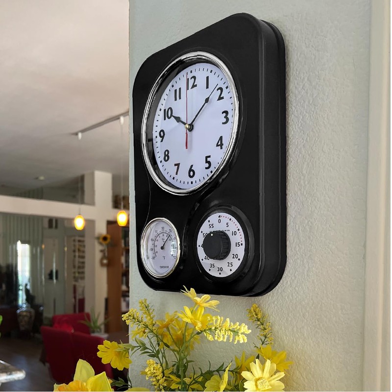 - MULTI-FUNCTION WALL CLOCK: The Retro Kitchen Wall Clock from Lily's Home features a built-in thermometer and 60-minute timer making it the ultimate addition to any kitchen! While the clock itself has been designed with quartz movement and guarantees accurate timekeeping.