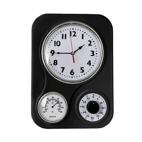 Lily's Home Retro Kitchen Clock with Temperature and Timer (Black)