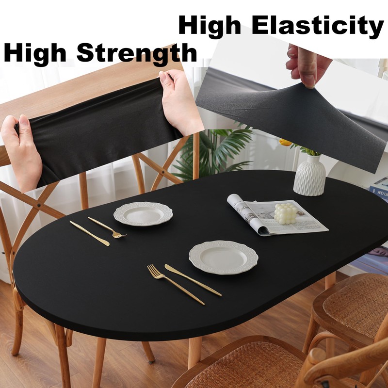- ELASTIC SIZE: Perfect for oval dining table up to 48 x 72 inches, this soft, stretchy spandex tablecloth adapts to table up to 2 inches thick while maintaining a smooth, fitted look