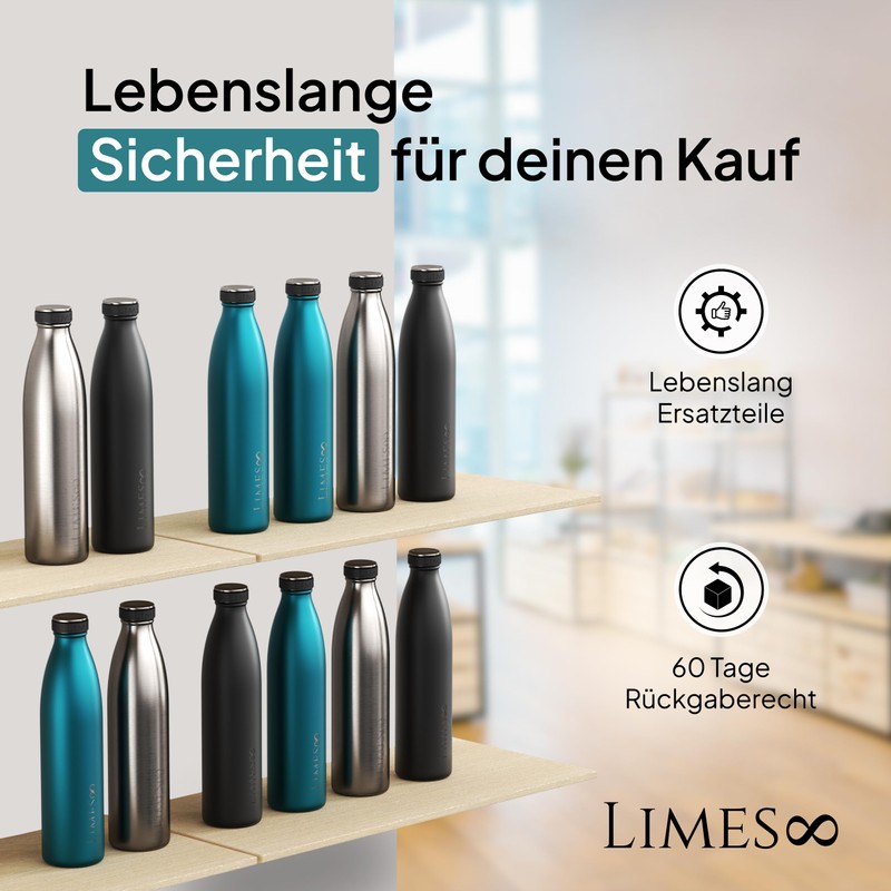 - Our promise – so that the drinking bottle 1 L stainless steel carbonated insulates, our sealing ring is used. You will receive a lifetime of spare parts for your water bottle 1 litre stainless steel