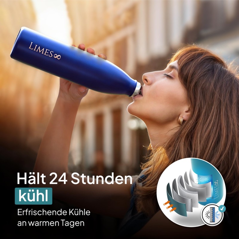 - Cool in summer – because the drinking bottle uses 1 litre stainless steel with a 5-way vacuum insulation, cold drinks stay completely cool in the stainless steel bottle 1 litre – up to 24 hours