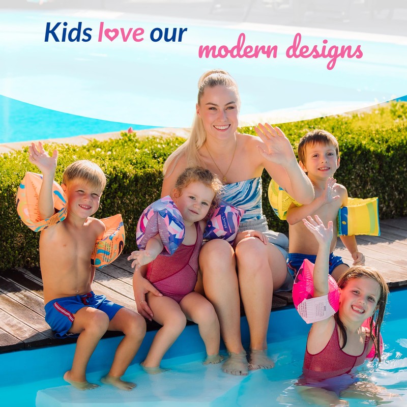 - Swimming Aid Suitable for boys and girls. Our diverse selection of 6 different unique designs gives our customers a varied choice to allow their toddlers to stand out from the crowd. This will also allow parents to easily identify their children while they are in the swimming pool.