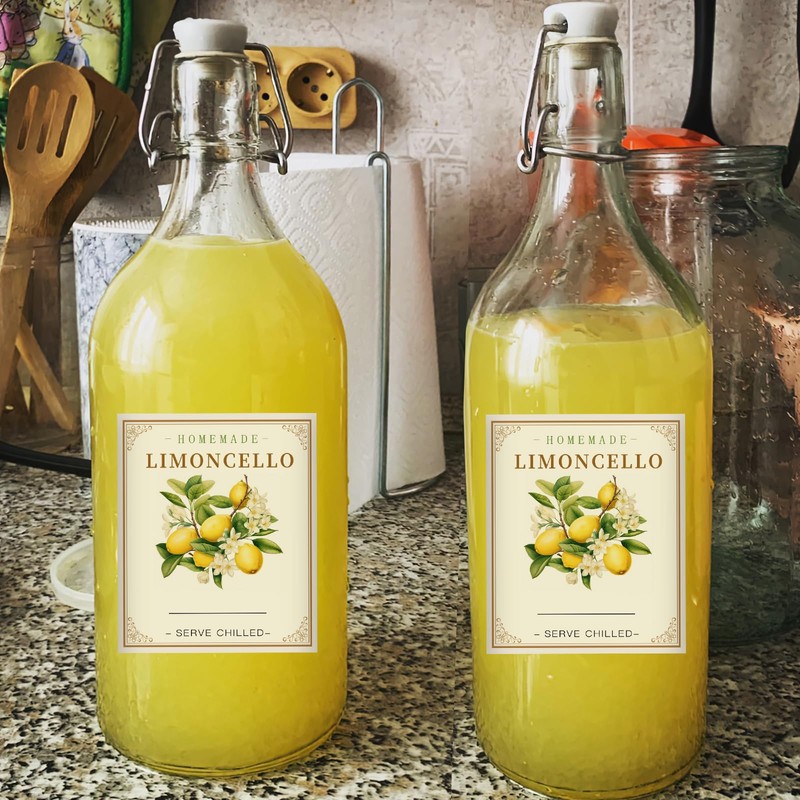 1.Elevate your homemade limoncello with these stylish and decorative bottle labels