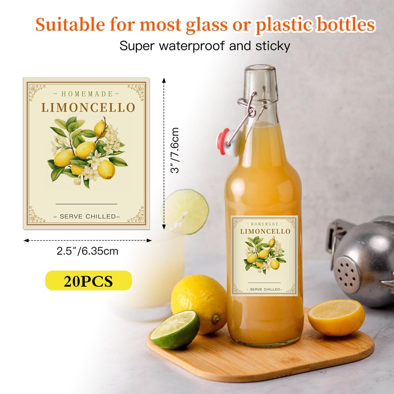 - Limoncello Labels for Bottles:This set includes 20 limoncello labels, perfect for homemade limoncello bottles, adding a touch of sophistication to your creations