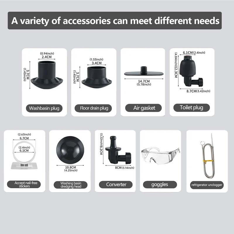 LIMORUNS Professional Toilet Plunger Set with Multiple Attachments, High-Pressure Air Pump Design, Drain Cleaning Kit