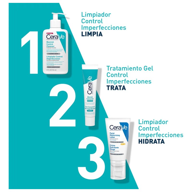El Limpiador CeraVe Control Imperfecciones 236ml es una opción eficaz y suave para quienes buscan un control diario de las imperfecciones sin comprometer la salud y la hidratación de su barrera cutánea.