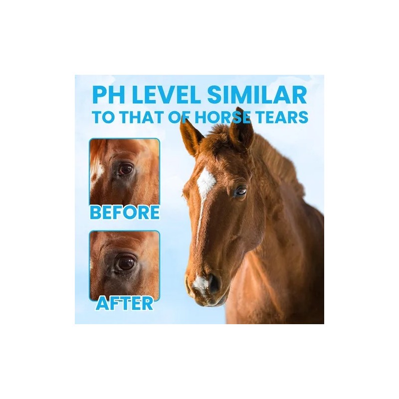 Aplicación sin esfuerzo: la práctica botella cuentagotas garantiza una aplicación precisa directamente en el ojo de su caballo para facilitar el enjuague. Alternativamente, vierta una pequeña cantidad en una almohadilla de algodón para limpiar suavemente las manchas de lágrimas y los desechos alrededor del ojo.