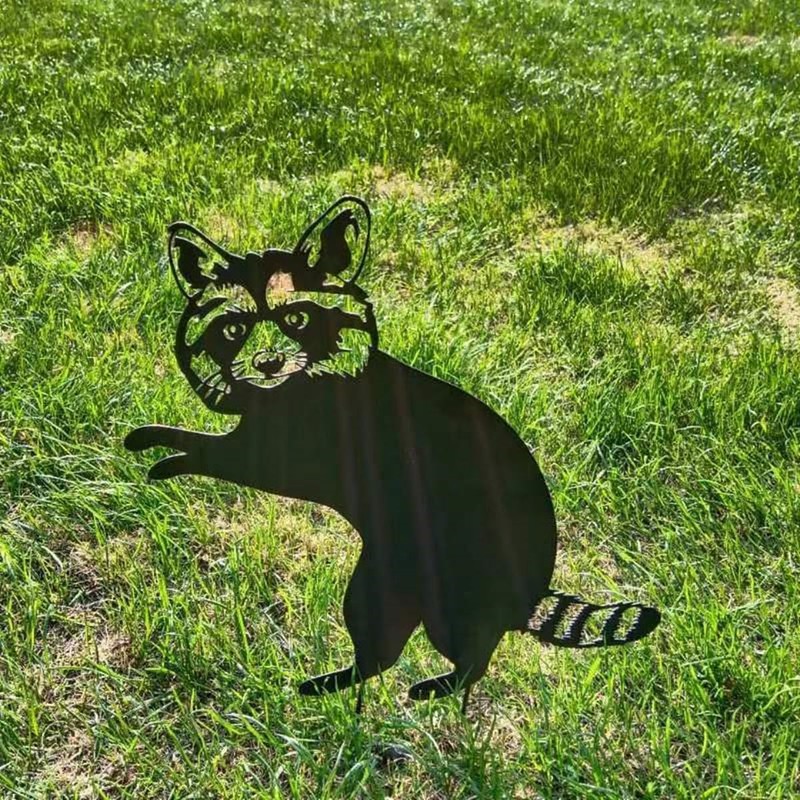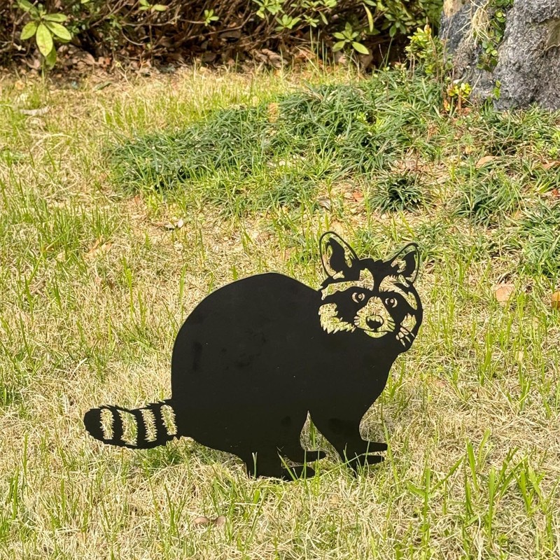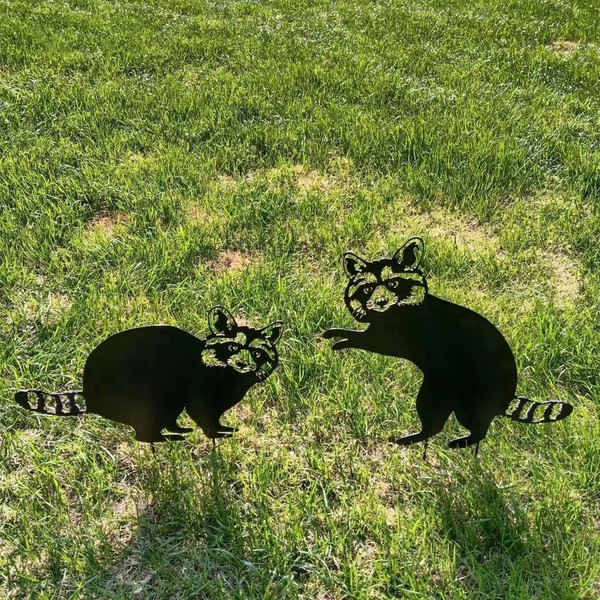 - CUTE GARDEN DECOR The decorative raccoon garden stakes are crafted by our designers and are inspired by the animal elements of nature - raccoons. Cute raccoons are perfect for decorating gardens, patios, outdoor areas, backyards, walkways, paths and anywhere you want to bring life and fun to your environment.