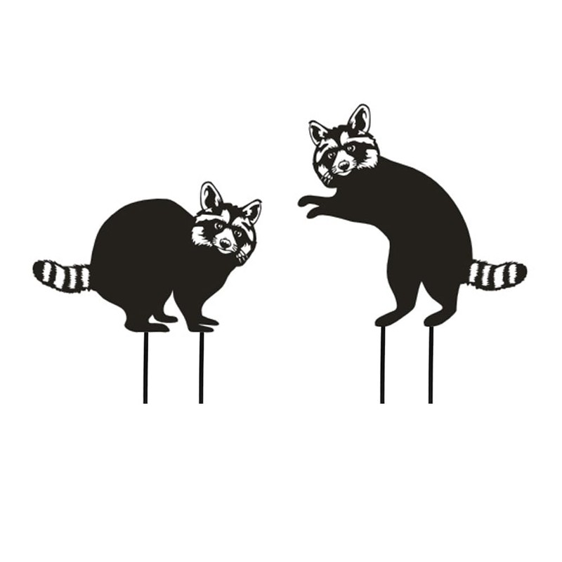 - The package includes: there are 2 packs of black raccoon silhouettes. The sizes are 28 x 27 cm / 11 x 10.6 inches and 28 x 18 cm / 11 x 7.08 inches. Simply insert the metal raccoon stake into the ground. Let these beautiful decorative raccoon garden stacks give you a vibrant, cheerful and romantic courtyard.