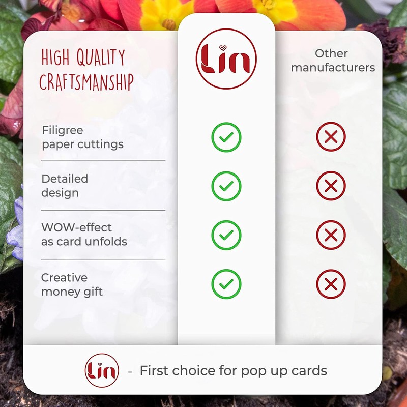 - Handmade: All our 3D cards are handmade from high-quality solid paper with great attention to detail and manufactured with German quality standard under fair trade.