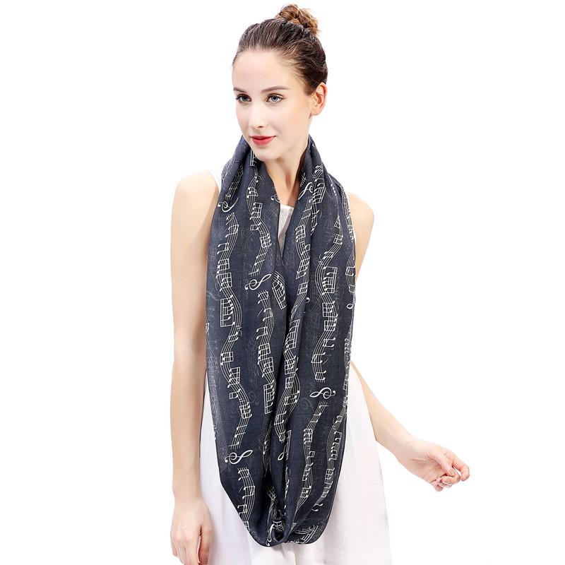 Lina & Lily Musical Note Print Women's Infinity Scarf Lightweight (Dark Gray)