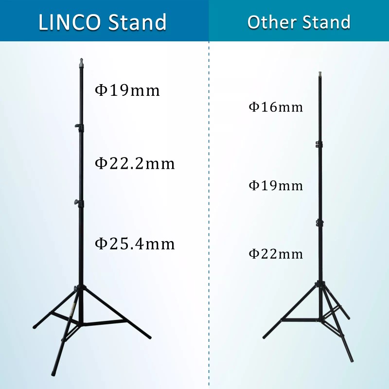 - With 35 inches bigger and safer footprint (Competitors 7 feet light stand almost with 27 inches footprint)