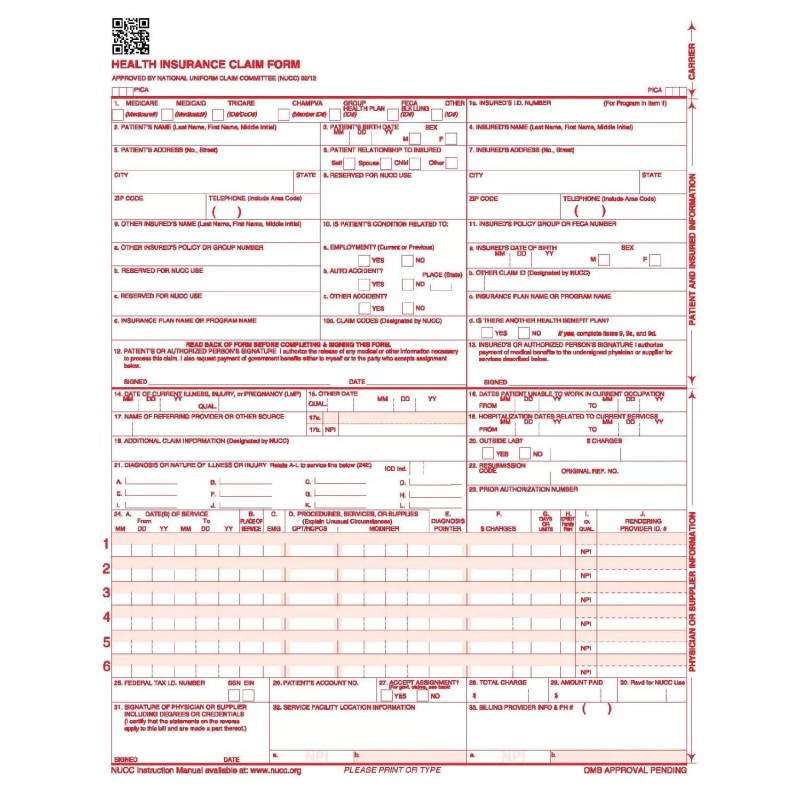- 1-Part Laser Form CMS-1500 printed in red ink