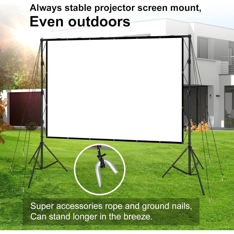 In addition to the accessories required for the portable projector screen with stand, we have added additional accessories to ensure you have a good viewing experience when using the product indoors or outdoors.