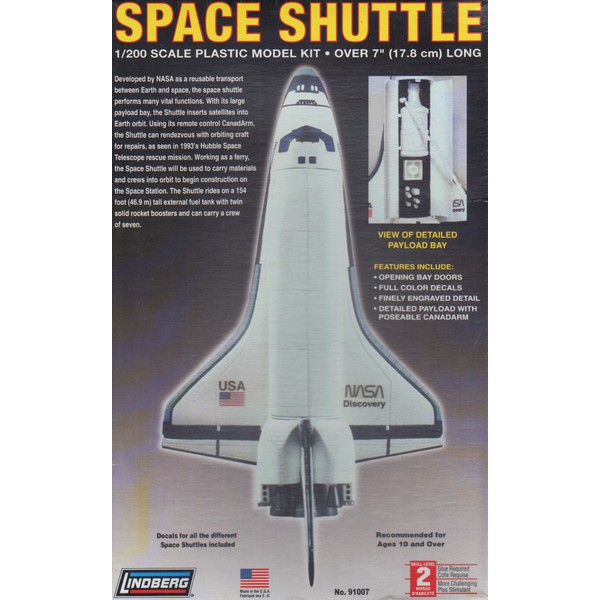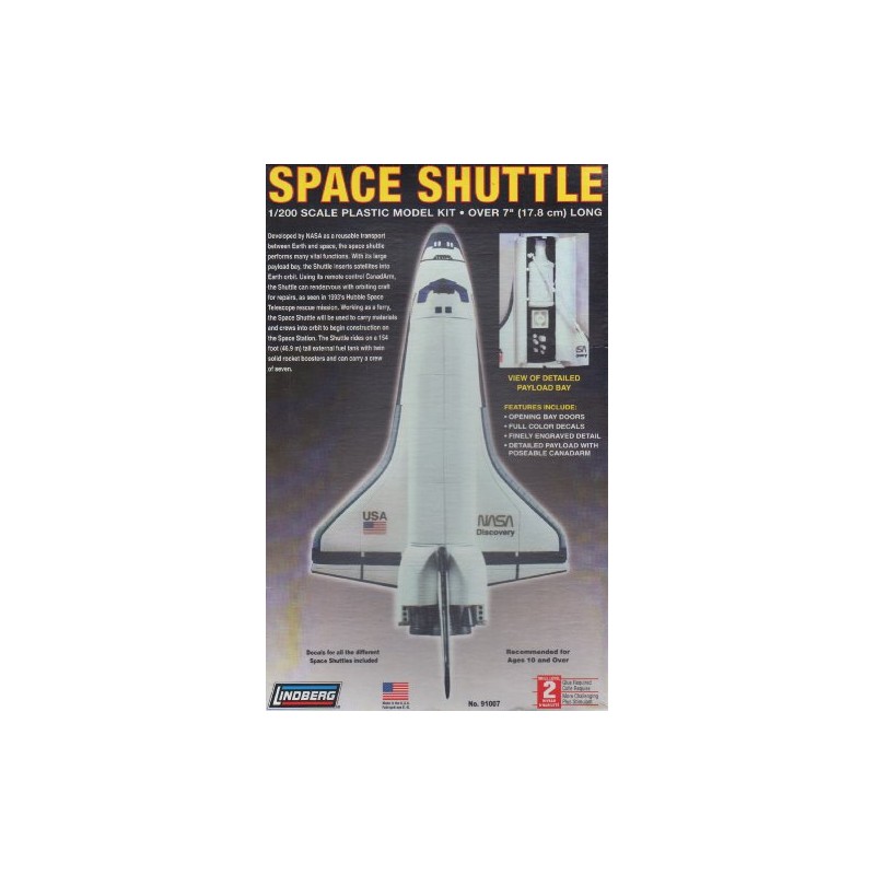The Space Shuttle was developed by NASA as a reusable transportbetween Earth and Space This comes with detailed replica. Includes opening bay doors, full color decals and poseable canadarm. Is easy to assemble.