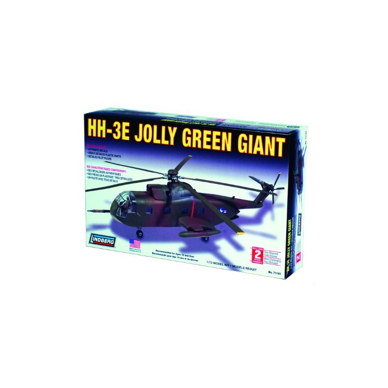 The HH-3E Jolly Green Giant helicopter was used in Vietnam and Desert Storm for combat research and rescue This comes with detailed replica, authentic replica. Pilot and copilot figures included. Is easy to build.
