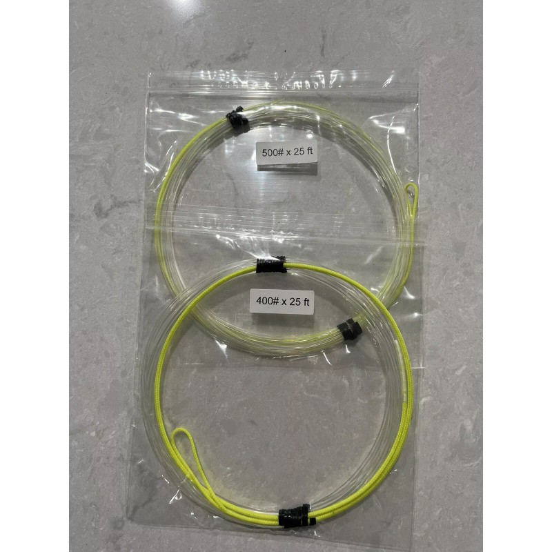 wind on leader. 400 and 500lb x25 feet. Bulk price available. All are 25 feet long