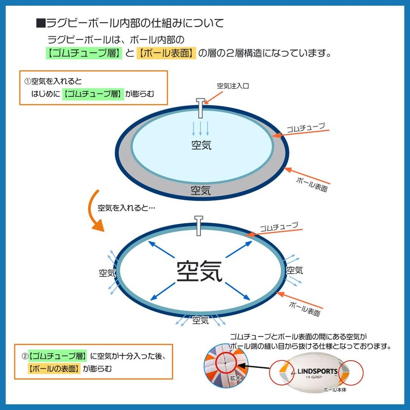 The rugby ball is made of a double layer structure with an air bag inside. When you inflate the air from the outside and the inner air bag will push out from both ends, so it is easy to misunderstand that air is leaked, but if you continue to fill it with air, the air will stop leaking. If the air is inflated to a full, there is a possibility of initial defects, so please contact our customer service.