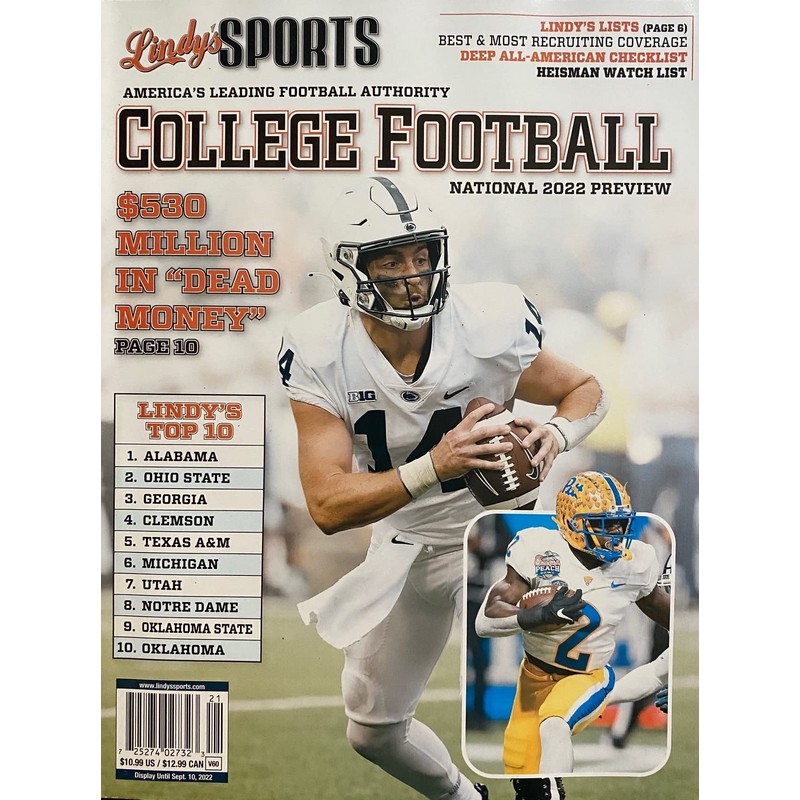LINDY'S SPORTS MAGAZINE - COLLEGE FOOTBALL - NATIONAL 2022 PREVIEW- LINDY'S TOP 10--WE WILL SEND RANDOM COVER