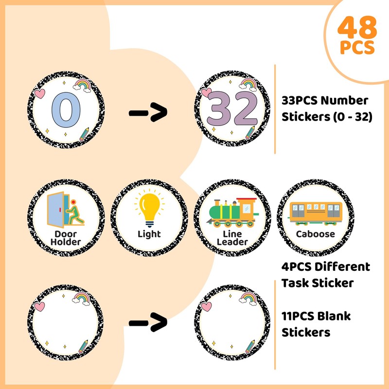This set includes 48 numbered stickers from 1 to 30, designed to make classroom organization simple and fun. Teachers can use them as floor spots for line-up activities, group assignments, or interactive games with students. Crafted from high-quality, waterproof, and scratch-resistant material, these stickers are built to last. They adhere strongly to most surfaces while still allowing easy, residue-free removal whenever you need to reposition or replace them. With bold, vibrant colors, the numbers are easy for children to see and recognize, making learning activities more engaging. Whether used daily for lining up or creatively in lesson plans, these stickers bring order and excitement into the classroom. They also make a wonderful gift for teachers who want to add structure and creativity to their teaching space. Practical, colorful, and versatile—an essential tool for any classroom.