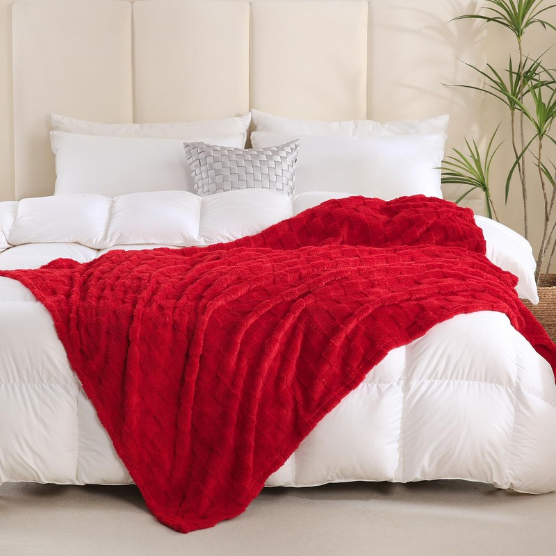 Linecooo RED Fleece Throw Blanket 50”×70” for Couch Sofa Bed,Super Soft Cozy Plush Microfiber Flannel Blanket with 3D Checkered Design Lightweight for Adults,Woman,Girls