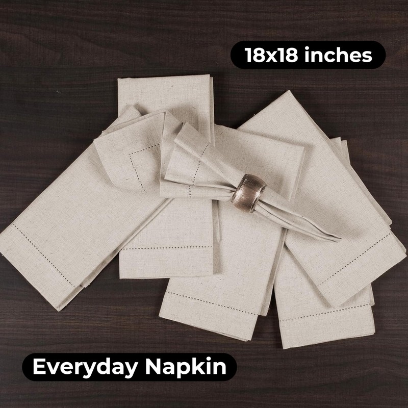 - Value Pack: Each set contains 2 dozen Linen Flax Cotton Fabric Dinner Napkins - Tailored with Mitered corners and a generous Hemstitched. Each napkin measures 18X18 inches. These linen cloth napkins will add a touch of charm in any event or hosting.