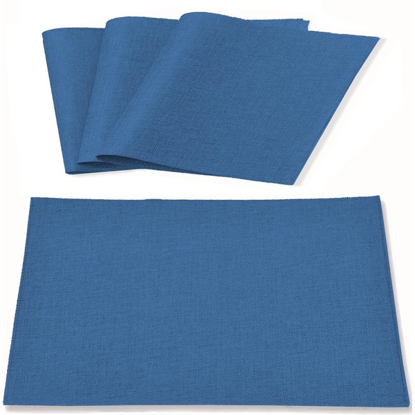 Linen Fabric Placemats Set of 4, Machine Washable, Heat Resistant, Wrinkle Free, Thick Polyester Kitchen Place Mats for Dining Table (Navy Blue)