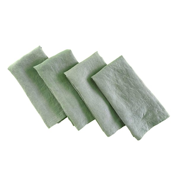 Linen Napkins – 100% French Flax – Stonewashed Pure Linen Cloth Napkins – Mitered Corners – Size 50 cm x 50 cm - Set of 4 (Sage Green)