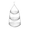 A chained chrome wire 3 tier hanging basket helps you organize your kitchen space while giving a beautiful display. It can be split into 3 baskets by unhooking the chain. Made of sturdy wire chrome finish. Can be used to store fruit, vegetable, food goods and other kitchen items. Measures overall height 27 when hang. Large basket size 13.2 x 8 x 4. Medium basket size 11.5 x 7 x 3.5. Small basket size 9.5 x 6.5 x 3. Overall weight 22 oz.