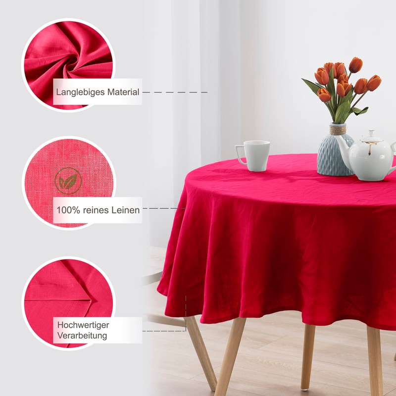 • QUALITY: Our linen tablecloths are made from 100% genuine natural linen, are sewn by hand and are subject to our strict quality controls. Pre-washed, these are particularly soft and therefore wrinkle less.