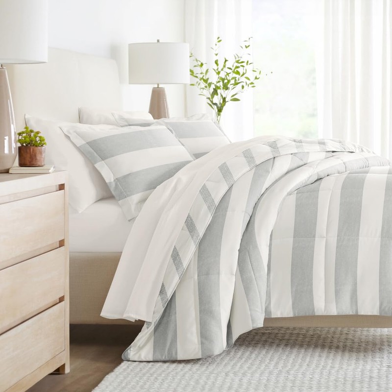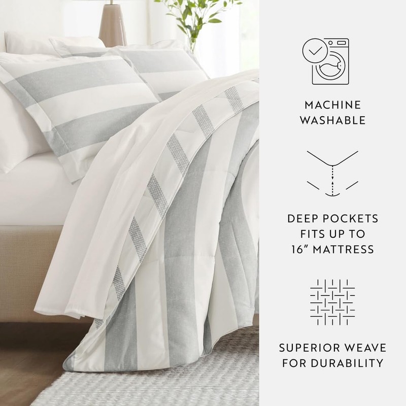 LINENS & HUTCH Bedding Bundle, Patterned Microfiber Comforter Set and Solid Sheet Set - TwinXL Distressed Stripe Light Blue