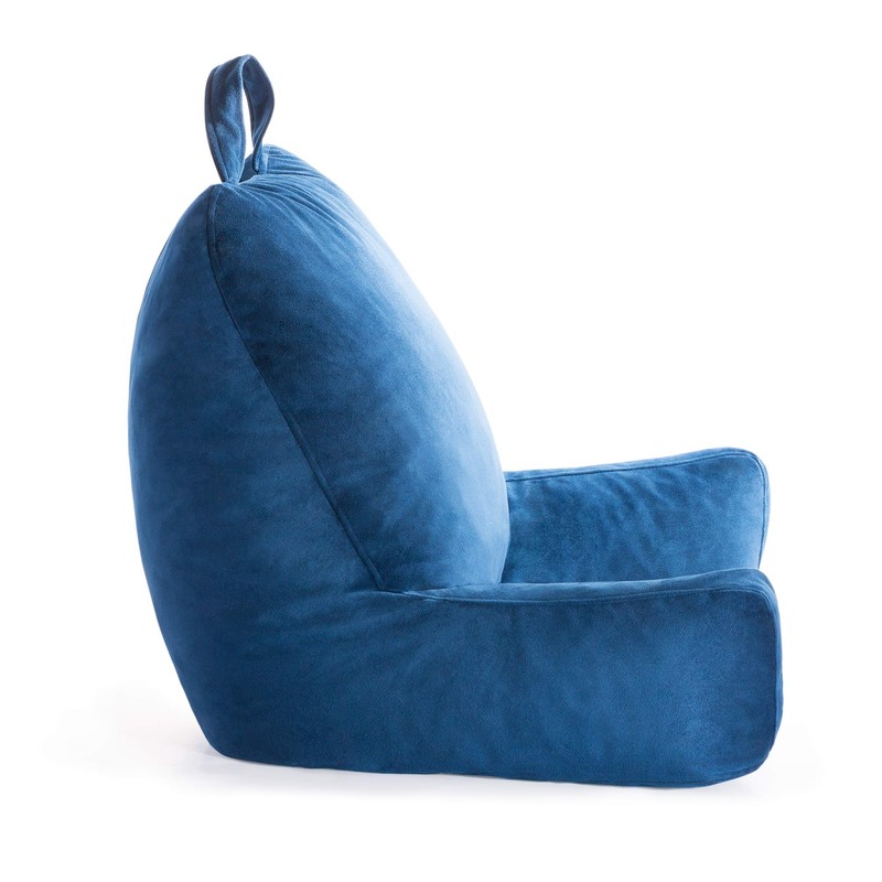 Prop yourself up and settle in for a good book or favorite movie. The LINENSPA Reading Pillow is filled with shredded foam for just the right amount of moldable comfort and support as you relax. Use it in bed to properly support your back. This lounge pillow has a plush velour cover, cozy arm rests, and a convenient carry handle on top. Pillow is available in standard and extra- large sizes in neutral navy and stone colors. The extra-large size is also available with a removable neck support option that can be used to enhance comfort around your neck or prop your legs up to increase circulation. Choose the perfect pillow to customize your support.
