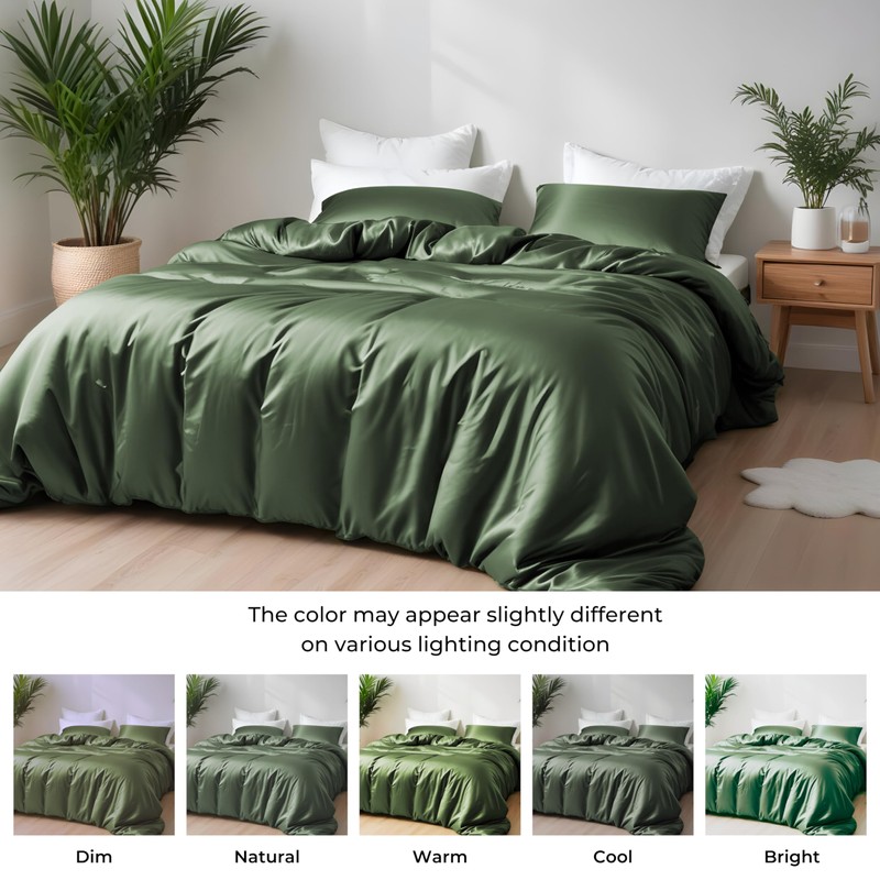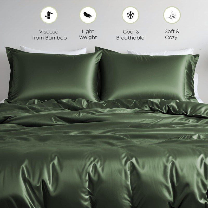 - Bamboo Duvet Cover - Our duvet/comforter cover sets are made from OEKO TEX certified 100% organic 300TC vegan bamboo fiber which means it is healthy, eco-friendly, and harmless to your skin, our bamboo bedding sheets provide a comfortable surface for sleepers Its super soft feel that you won't want to get up from