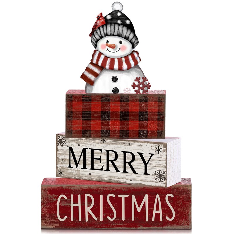 - Christmas Snowman Tiered Tray Decorations: christmas tiered tray decor set is designed in the shape of a classic snowman sign and blocks, come with 4 wooden signs, 1 snowman sign and 3 wood decoration blocks; Vibrant Christmas centerpieces are suitable for Christmas parties and home to welcome the holiday