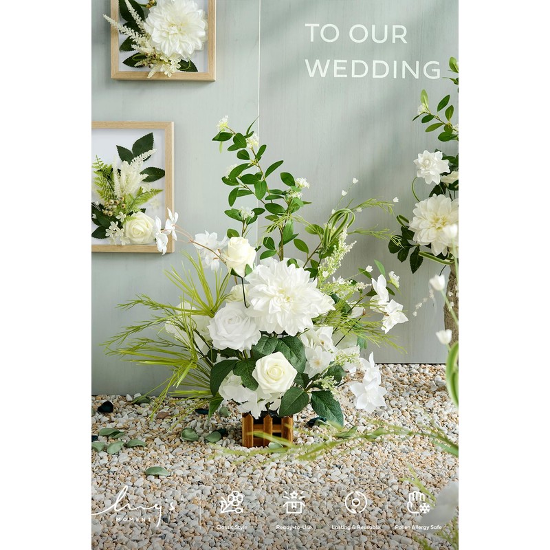 • WEDDING FLORAL DECOR DETAILS: Free-standing flower arrangement x 4, helps to create a romantic spring, summer wedding. These pre-made floral arrangements are perfect for decorating the wedding aisle, welcome entrance, table centerpieces, and wedding arch decor.