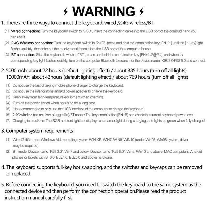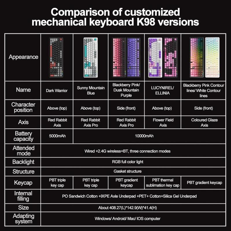 Lingbao K98 Mechanical Keyboard, Rechargeable Wireless Keyboard with RGB Side Light, Gaming Keyboard for Office & Home:_Sunny Mountain Blue_Red Rabbit Axis Pro [10000mAh]
