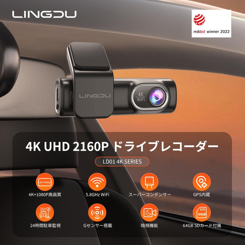 - (Equipped with 5 GHz WiFi, 64 GB Card) 1. Use the LINGDU app from 2.4 GHz Wi-Fi app to check recorded videos by simply connecting it to your smartphone in the event of an accident or aiming at a car. It transfers data faster so you can check and play records, and download it as well. Take great recordings while traveling and share them with family and friends through SNS ❷ Many of the 4K dash cameras currently come with 32GB cards, but the capacity is full and will not be able to record for a long time. The LINGDU LD01 comes with a 64 GB microSD card, so you don't have to purchase a separate card and you don't have to worry about running out of space. Prevents damage to recorded video caused by accidents and protects important evidence