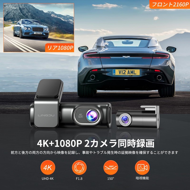 - 4K High Definition + 360 Degree Rotating Rear Camera + Front & Rear WDR Equipped: The LINGDU LD01 Dual Drive Recorder uses 3840P Ultra HD Lens for ultra high resolution video, which allows you to capture clear images with 8 million pixels. The front and back of the camera can simultaneously record both the front and the back. ? The rear camera unit is movable and can be adjusted 360°, so you can record both in the car and the back of the car, and there is less gap between the glass, so it can reduce reflections in the car. Easy to install even for beginners. Not only can it record a collision from the front, but also if you are driving from the backward. In addition, it uses a Sony sensor, and the photographic sensor is equipped with a CMOS sensor that supports 8 megapixels, night vision function (Starvis), noise reduction, and WDR (compatible with backlight), so it is strong against backlight, and it corrects images taken under high contrast ratios such as overexposure, blackheads. Automatically supplement light when there is no light at night, and it will record clearly without blurring even in environments with high light differences such as rain, snow, fog, etc