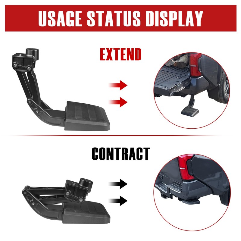 - CONVENIENT TO USE: The retractable design allows you to easily push it back under your vehicle when not in use. When you need it, your foot acts as the activation button, allowing you to effortlessly step onto it for graceful and easy access to your truck bed. It won’t interfere with any other functions of your vehicle during opening or retracting