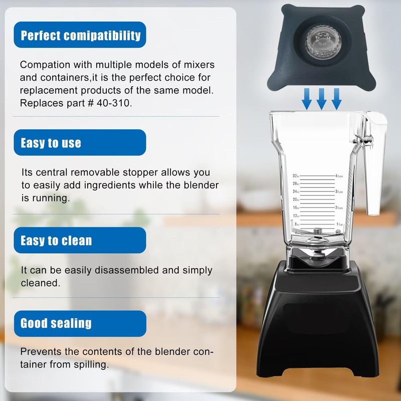 - 【Removable Center Cap】The removable center cap of blender lid allows you to easily add ingredients to shakes, soups and sauces during blending while controlling splatter. The removable center cap for blender jar replacement lid with the vented feature, the variable pressure is well controlled
