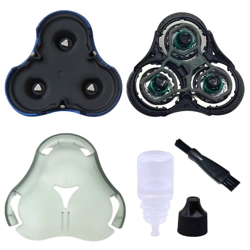 - Package Content: 1x Replacement Complete Shaver Head with Blue Base Holder, with Razor Oil & Cleaning Brush.