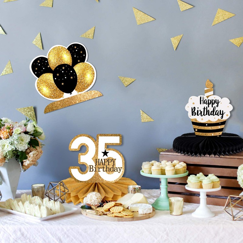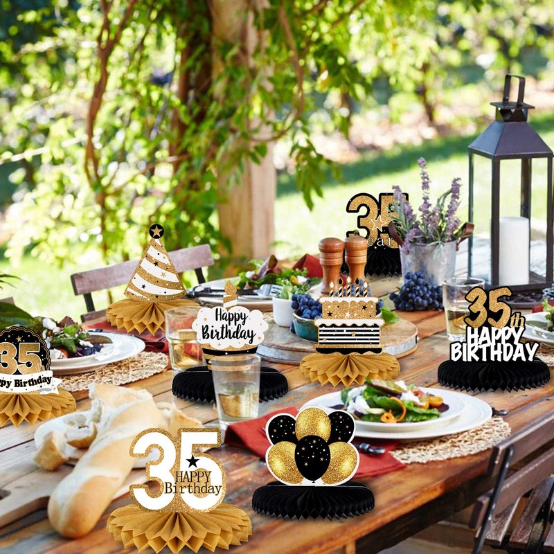 LINGTEER Happy 35th Birthday Table Honeycomb Centerpieces Cheers to 35th Birthday 35 Years Old Party Table Decorations Gift Sign.