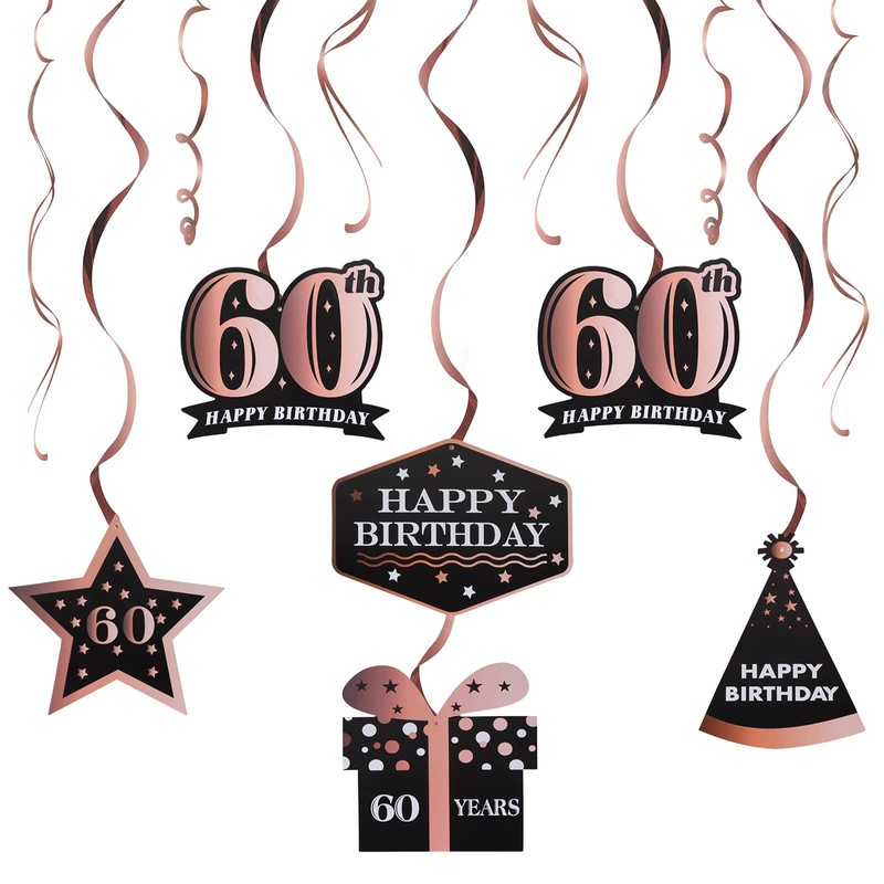 - [WHAT YOU GET] Comes with 12pcs “happy 60th birthday" swirls streamers,made of rose gold paper.