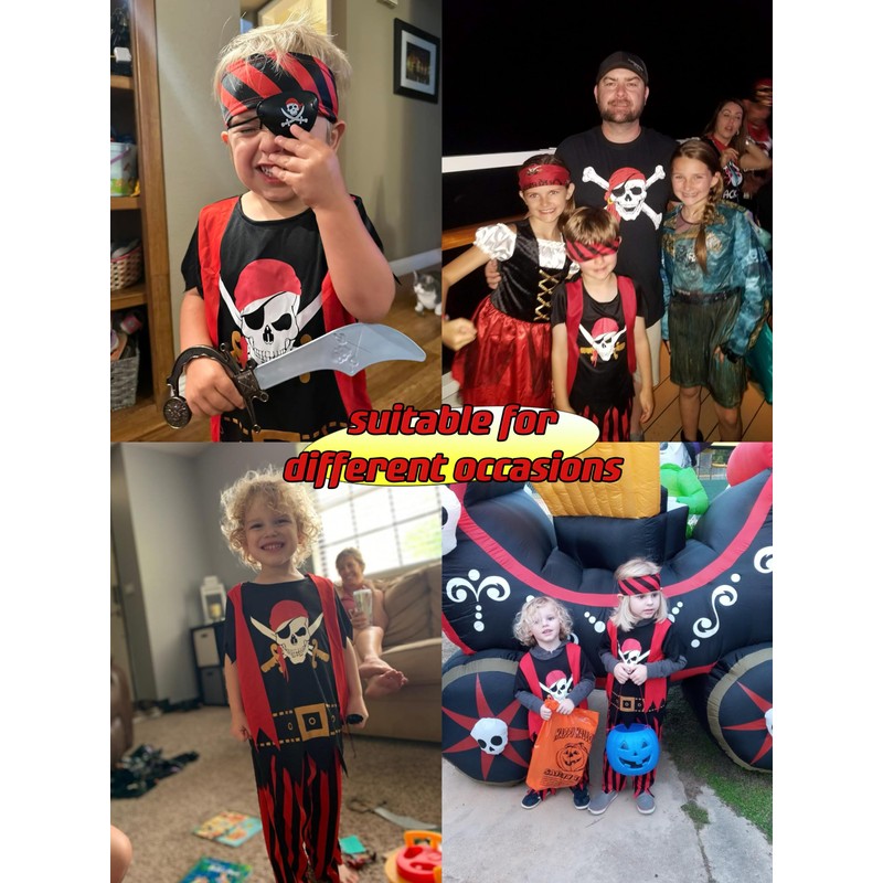 - This pirate costume set is perfect for kids role play activity ,kids pirate themed birthday party gift,Halloween priate costume for boys, disney cruise boys pirate dress up,world book day pirate costume and more.