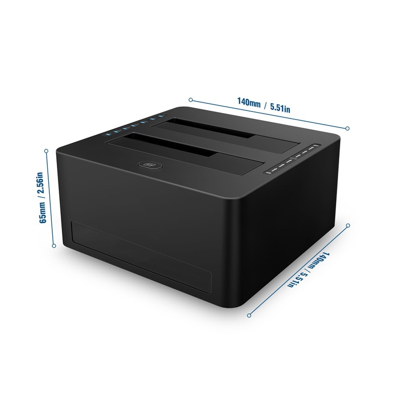 Wide Compatibility: This 2-bay hard drive duplicator supports all 2.5'' and 3.5'' SATA I/II/III HDD and SSD, up to 2X10TB capacity. Compatible with Windows, MacOS and Linux. Plug and play, no drivers needed.