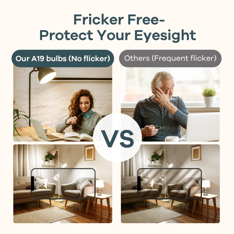 - Promised Quality & Eye Protection-- These A19 light bulbs 60 watts have passed UL Listed and FCC certification to guarantee great quality. Emitting stable, non-flickering light and zero harsh glares prevent eye fatigue and protect your family's eyesight effectively. No UV or IR Radiation. You can use Linkind products without any worry.