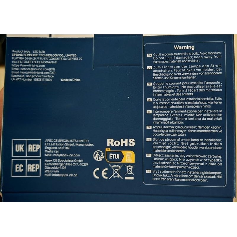 - [Reliable Quality]-AC 220-240V, tested and proved to be CE/RoHS/ErP certified. Contains no mercury, no lead. Creates no UV or IR Radiation. Lasts up to 25,000 Hours, 22 years( based on 3hrs daily use), reduces re-lamp frequency.