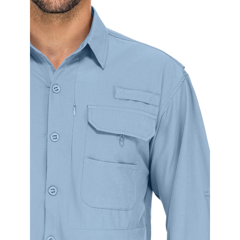 linlon Mens Safari Shirts Long Sleeve UV Protection Hiking Fishing UPF 50+ Quick Dry Travel Shirts#5066-Blue-S
